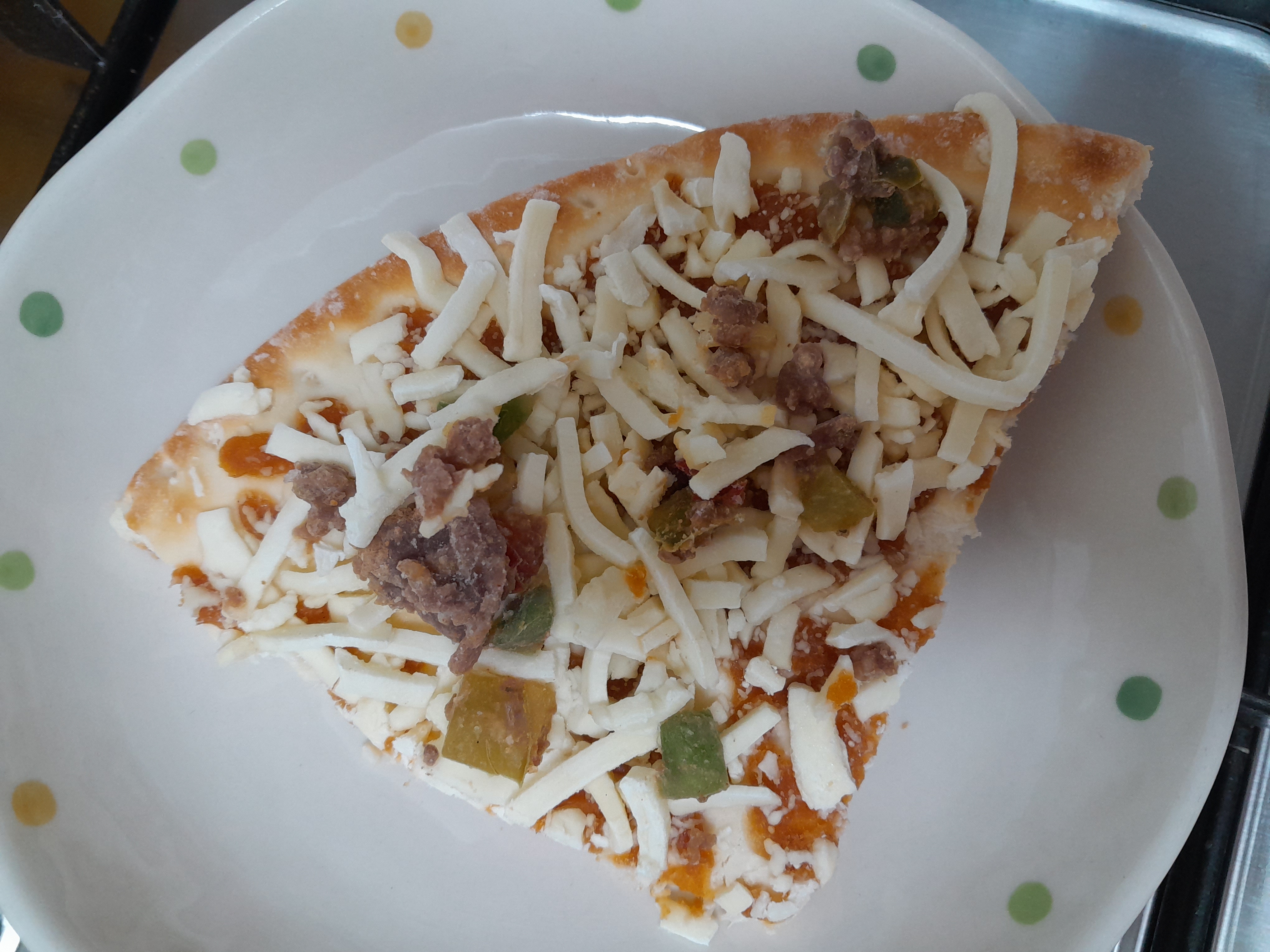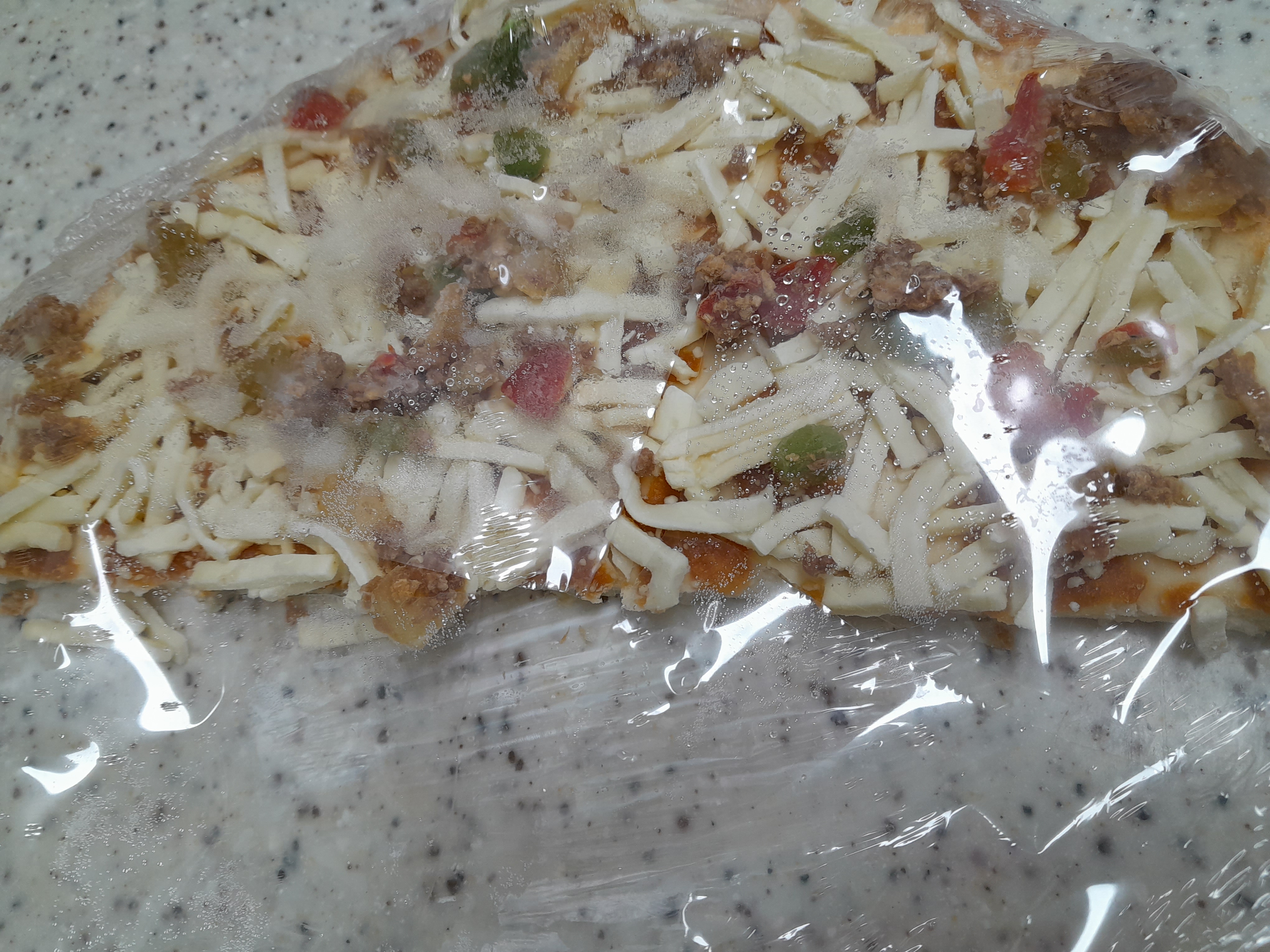 냉동실에 있는 피자를 보면서 시간에 구애받지 않고 언제든지 먹을수 있다고 생각하니 기분이 좋아집니다.